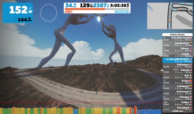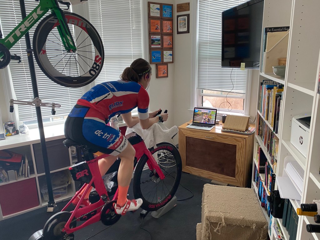 Speaking of games, Zwift is huge right now. For those of you not familiar, it’s a game in which you bike indoors to power a virtual avatar that rides with other virtual avatars, powered by real cyclists around the world. So in other words, from my bike in Virginia, I can race against someone who is biking in Paris, and our avatars are riding in a virtual version of New York City. If the avatar goes up a hill, the resistance on my bike gets harder. If I pedal harder, my avatar goes faster. This opens up a world of possibilities for type A athletes: timed segments to race against yourself and others, teams, dozens of races a day, group rides, badges for completing each of the ~100 routes, etc. I’ve raced four times so far and joined a Zwift team, which has been really fun. As you may recall, I raced a season of road cycling a few years ago and liked the team aspect, but a) wasn’t as fast as I hoped to be against pure cyclists and b) was very nervous about crashing so tended to lose position in the pack, on corners, etc. With Zwift, it’s impossible to crash and the ease of logistics mean I can race more often and practice. There are also live streamed races with commentary so I can learn about race tactics. This paragraph is taking a super nerdy turn, so I’ll just stop there.
